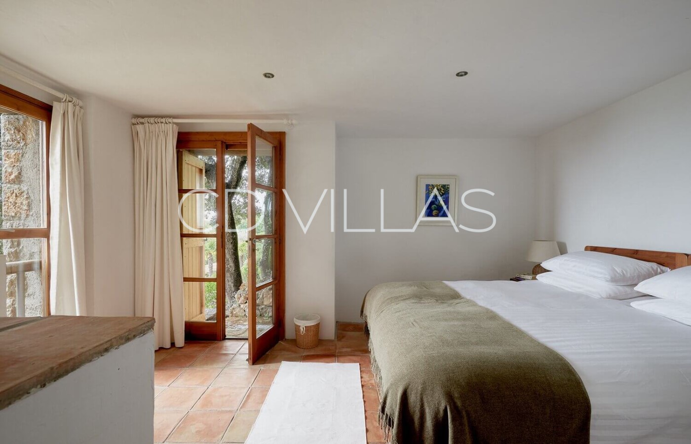Schlafzimmer 2 - Hauptschlafzimmer mit großem Doppelbett, direktem Zugang nach außen und eigenem Badezimmer mit Badewanne, Dusche, Waschtisch und Toilette