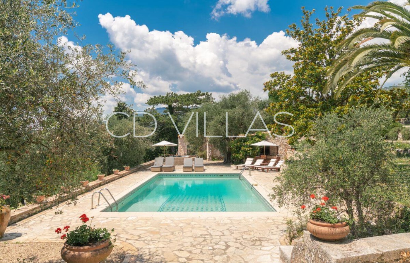 mediterranen Garten mit über 100 Olivenbäumen, Lavendelfeldern und