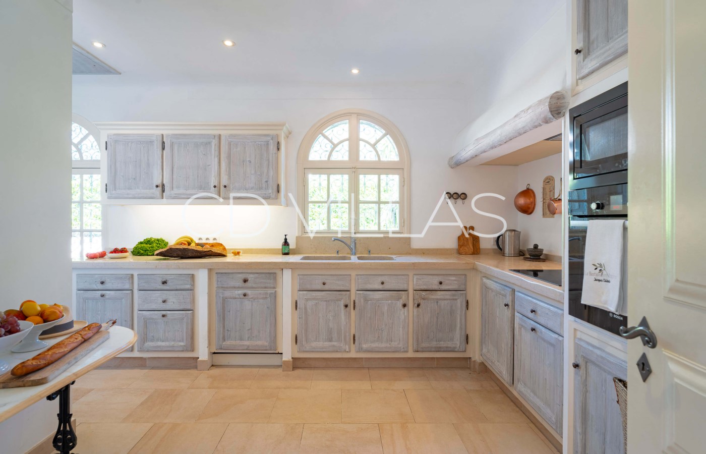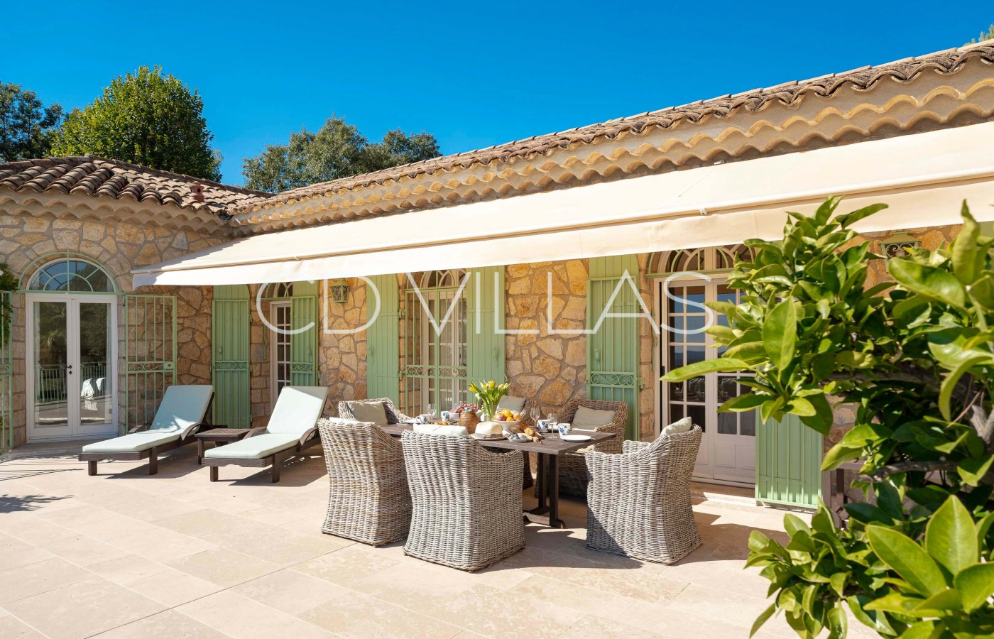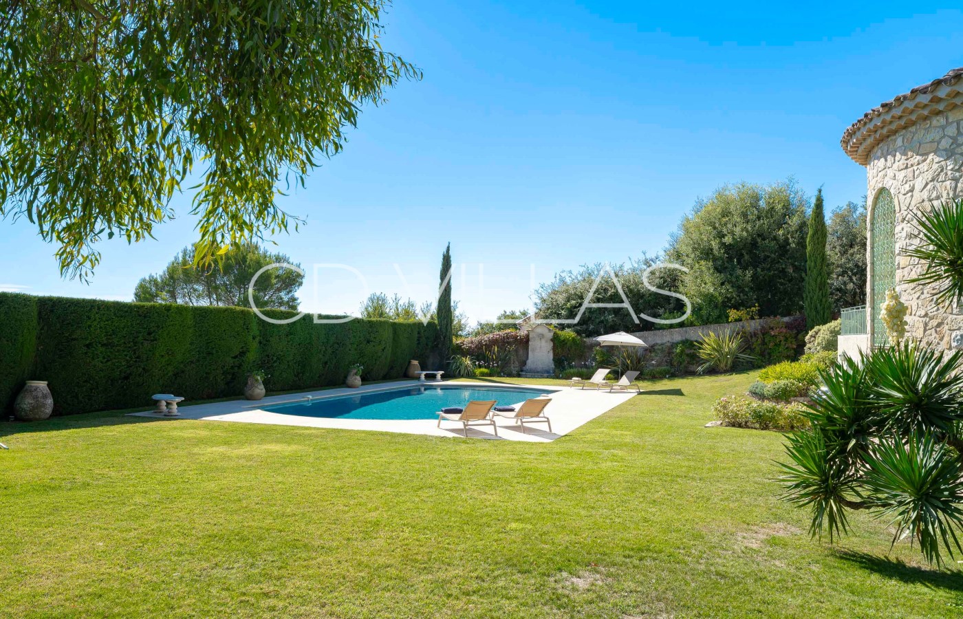 Die Außenbereiche umfassen einen funkelnden Swimmingpool, sonnige Poolterrassen, eine schattige Frühstücks- und Essens-Terrasse sowie einen ebenen Rasen, ideal zum Entspannen oder für gesellige Stunden. Jeder Bereich dieser Villa spiegelt zeitlose provenzalische Eleganz wider und schafft eine harmonische Verbindung von Komfort, Stil und Gelassenheit.