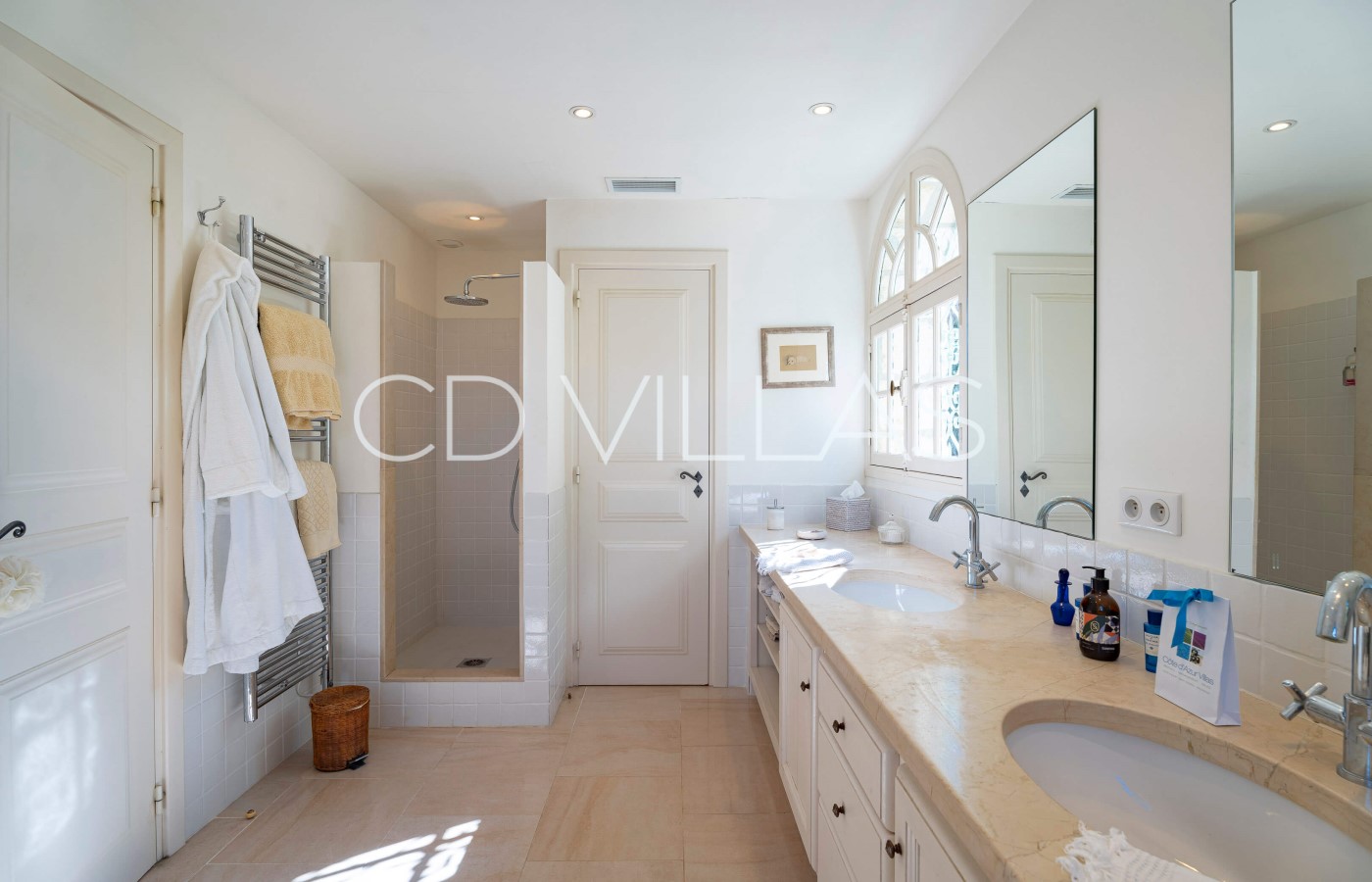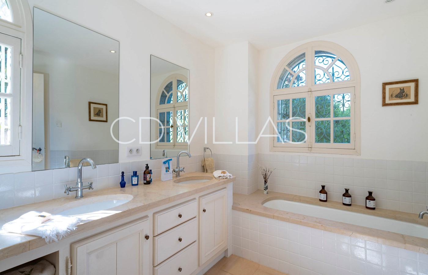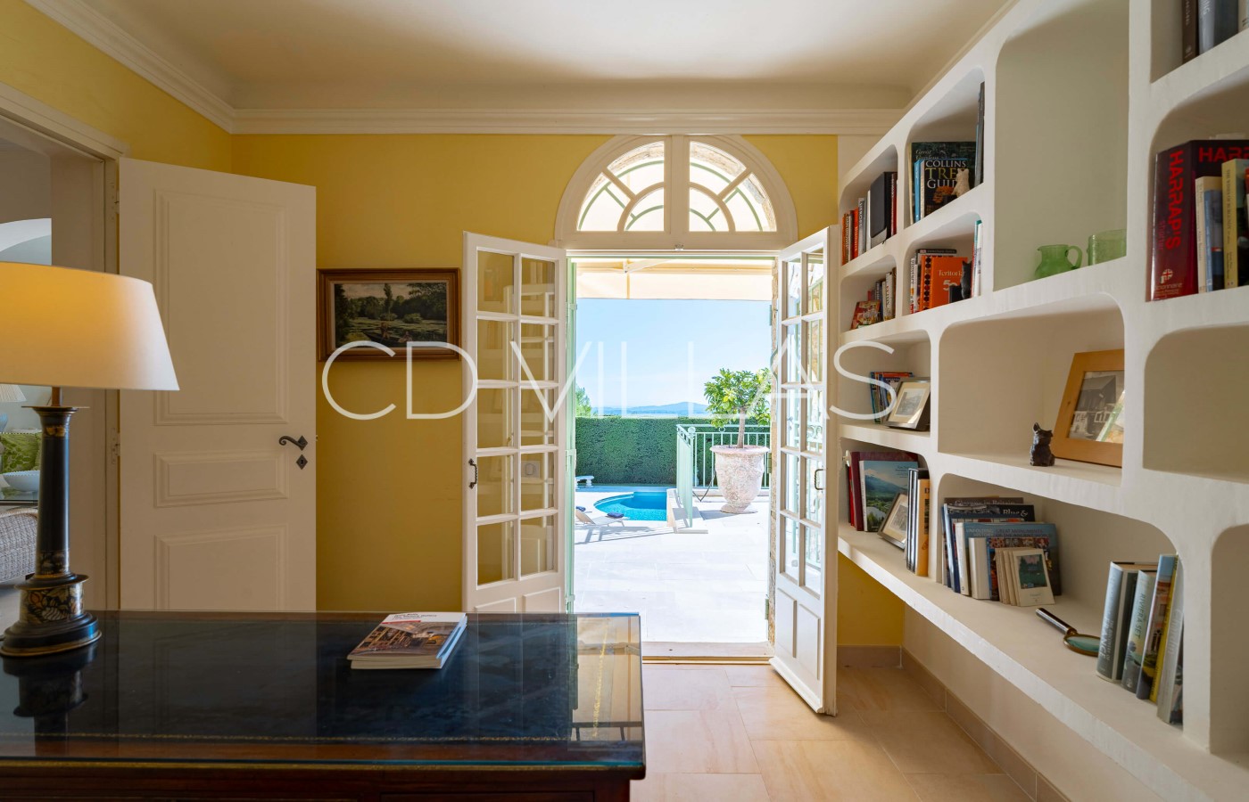 Die Außenbereiche umfassen einen funkelnden Swimmingpool, sonnige Poolterrassen, eine schattige Frühstücks- und Essens-Terrasse sowie einen ebenen Rasen, ideal zum Entspannen oder für gesellige Stunden. Jeder Bereich dieser Villa spiegelt zeitlose provenzalische Eleganz wider und schafft eine harmonische Verbindung von Komfort, Stil und Gelassenheit.