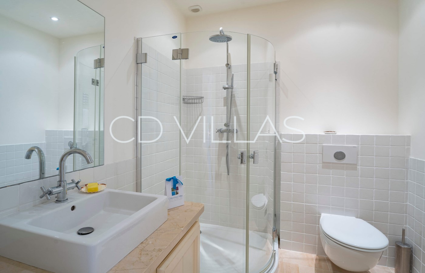 Die Unterkunft bietet helle, sonnendurchflutete Wohnbereiche mit bequemen Sitzgelegenheiten, die nahtlos auf Terrassen mit Blick auf den Pool übergehen. Die Küche ist komplett ausgestattet und bietet direkten Zugang zu den Terrassen - ideal für Mahlzeiten im Freien. Die Gäste profitieren von drei großzügigen Schlafzimmern im Erdgeschoss, jeweils mit eigenem Bad, ergänzt durch einen geräumigen zweiten Wohnbereich im Gartengeschoss mit zwei zusätzlichen Schlafzimmern, die sich ein Badezimmer teilen - perfekt für Gäste oder die erweiterte Familie.