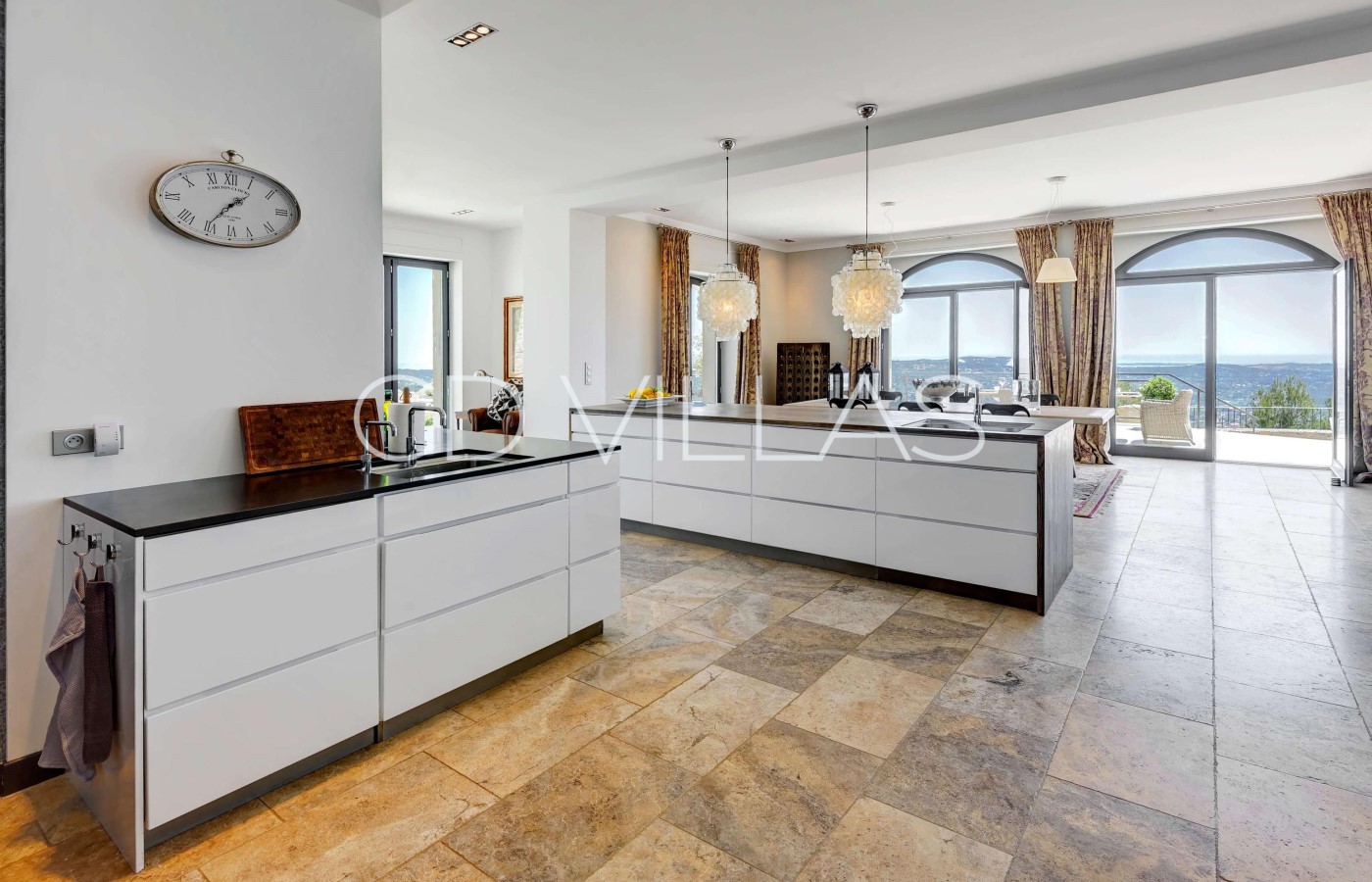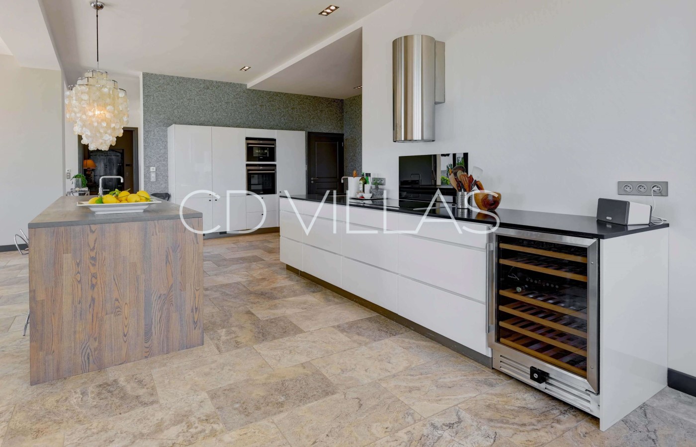 Die offene, voll ausgestattete, moderne Küche befindet sich im Erdgeschoss, es gibt 2 Kühlschränke, traditionellen Ofen, Dampfofen, Geschirrspüler und Fernseher. Sie führt direkt auf einen Essbereich im Freien.