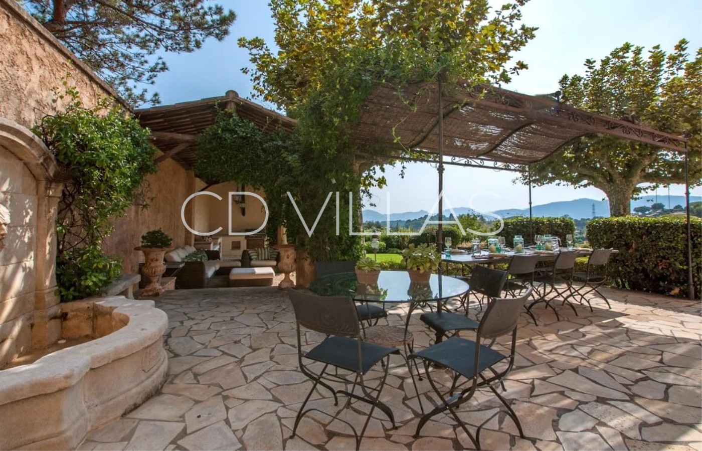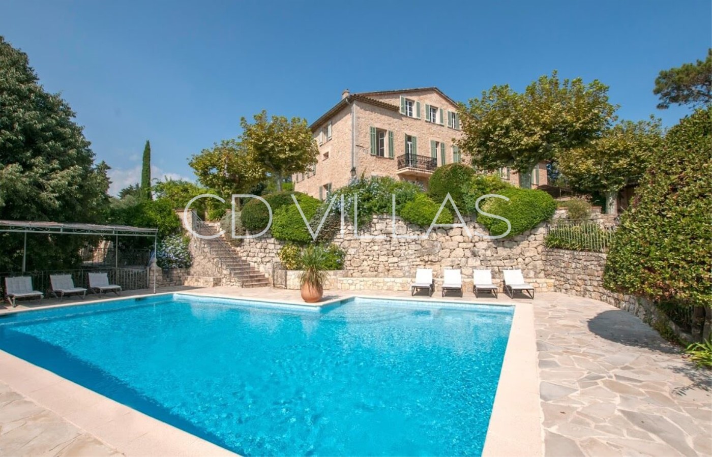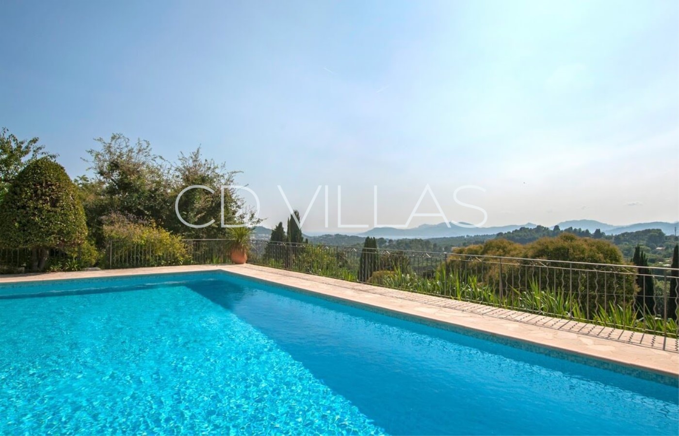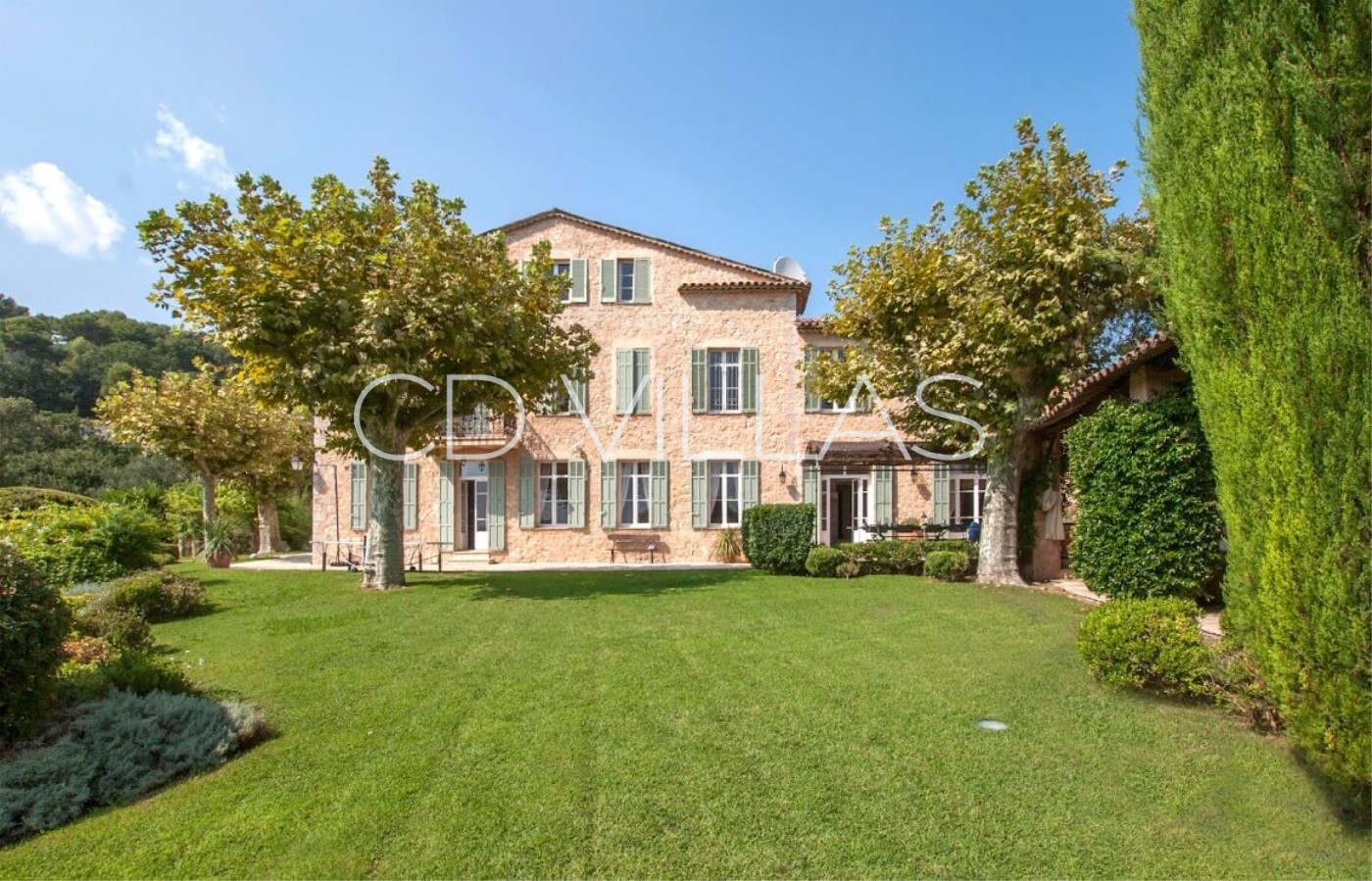 Dieses atemberaubende traditionelle Anwesen befindet sich in einem ruhigen Wohngebiet von Mougins und bietet 8 Schlafzimmer, Klimaanlage im gesamten Gebäude und einen herrlichen Blick auf die Esterel-Berge und das Meer.
