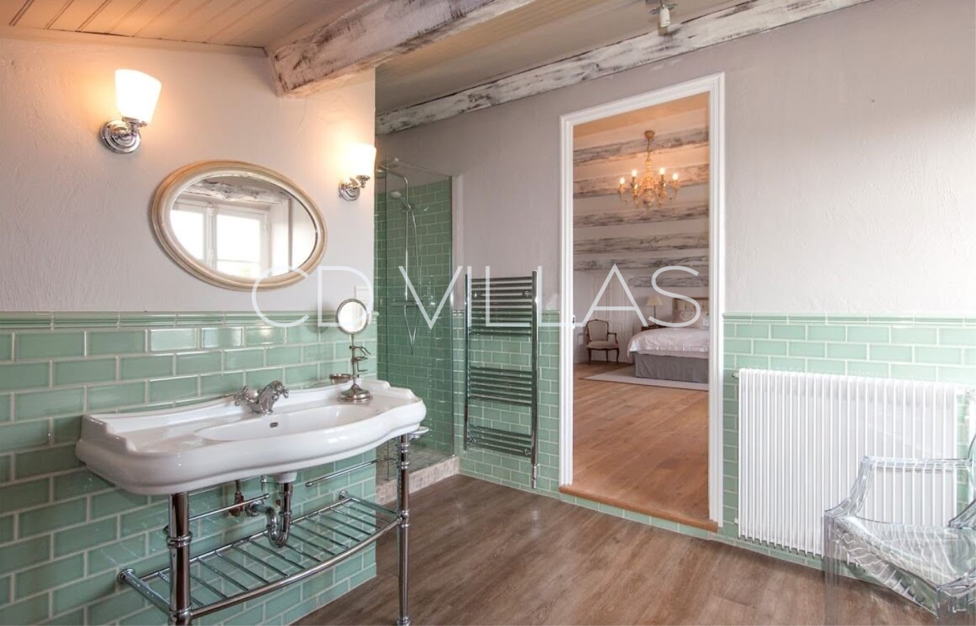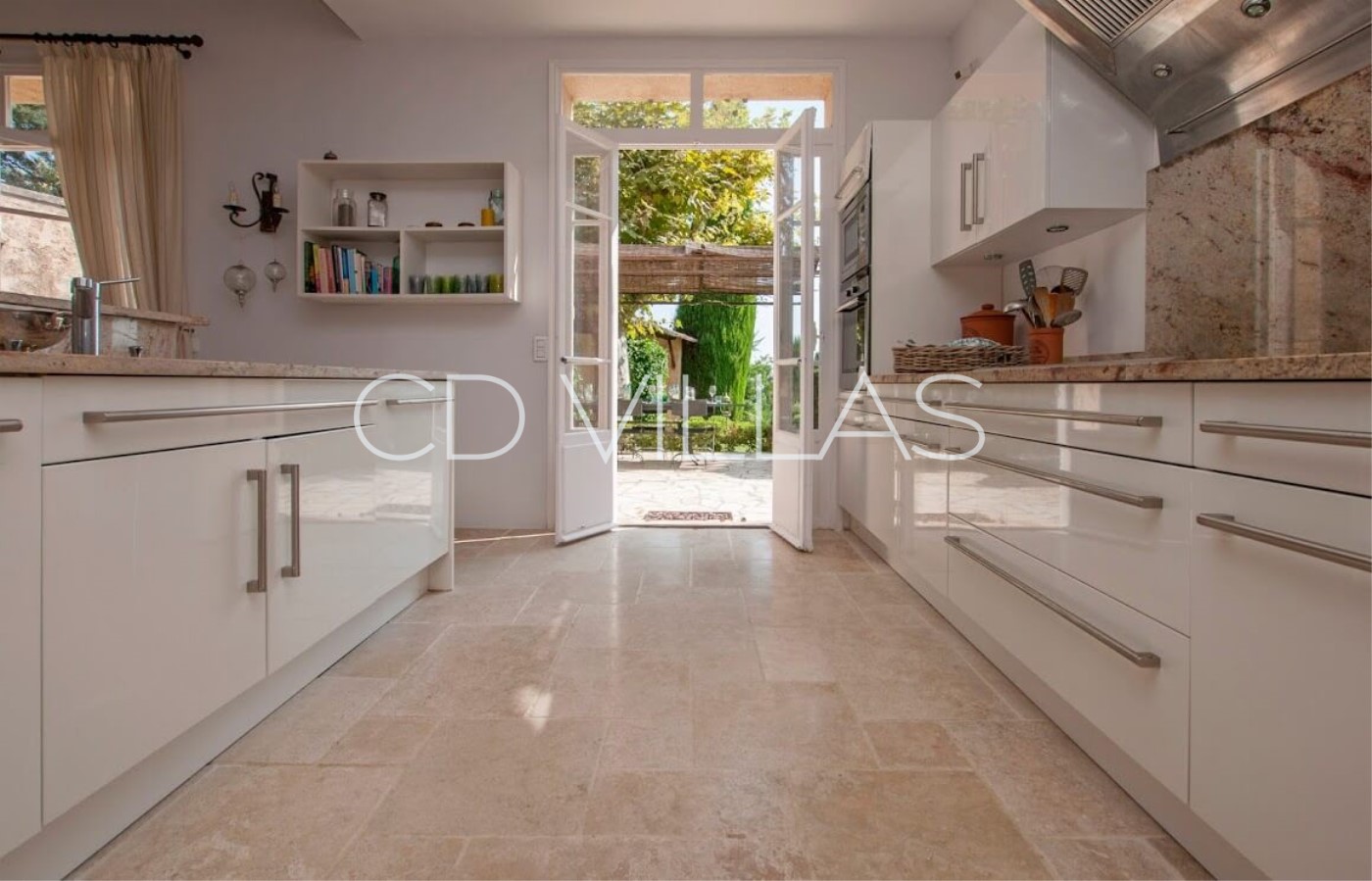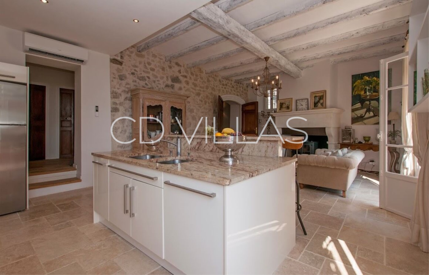 Dieses wunderschön restaurierte traditionelle Bauernhaus bietet 8 Schlafzimmer, hochwertige Innenausstattung, einen beheizten Swimmingpool und weitläufige Gärten mit herrlichem Meerblick.