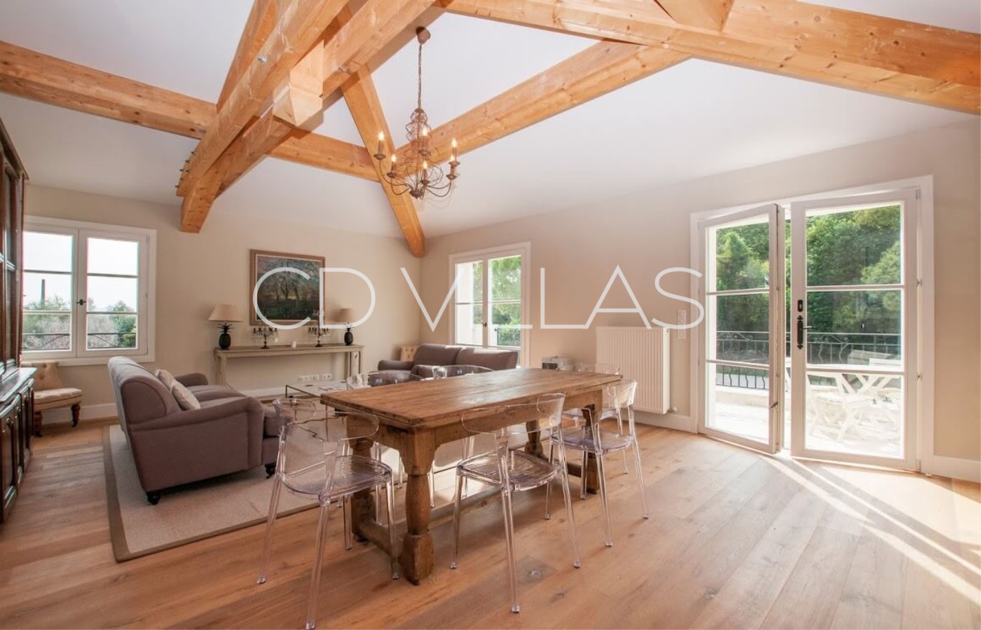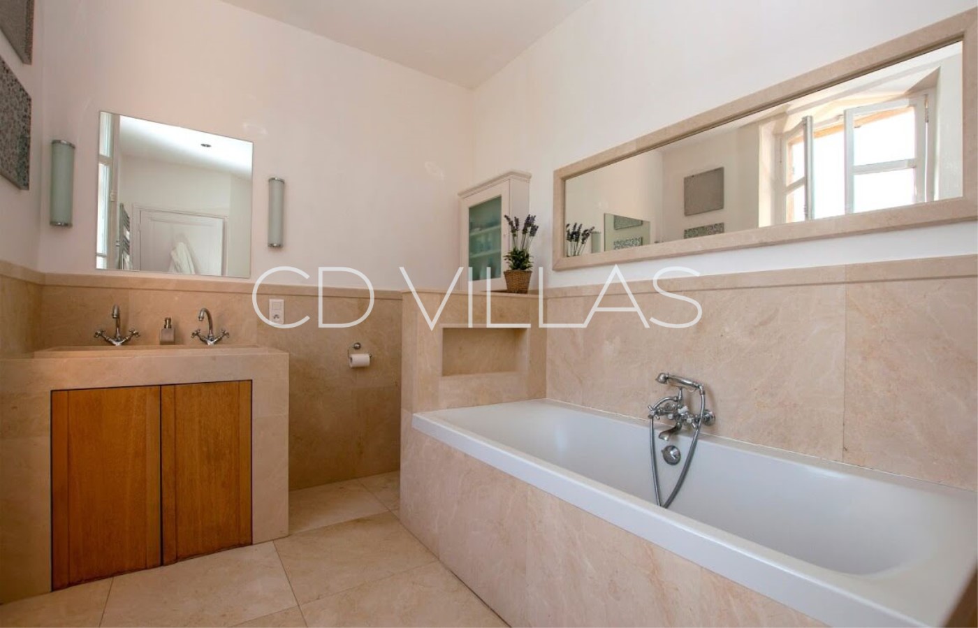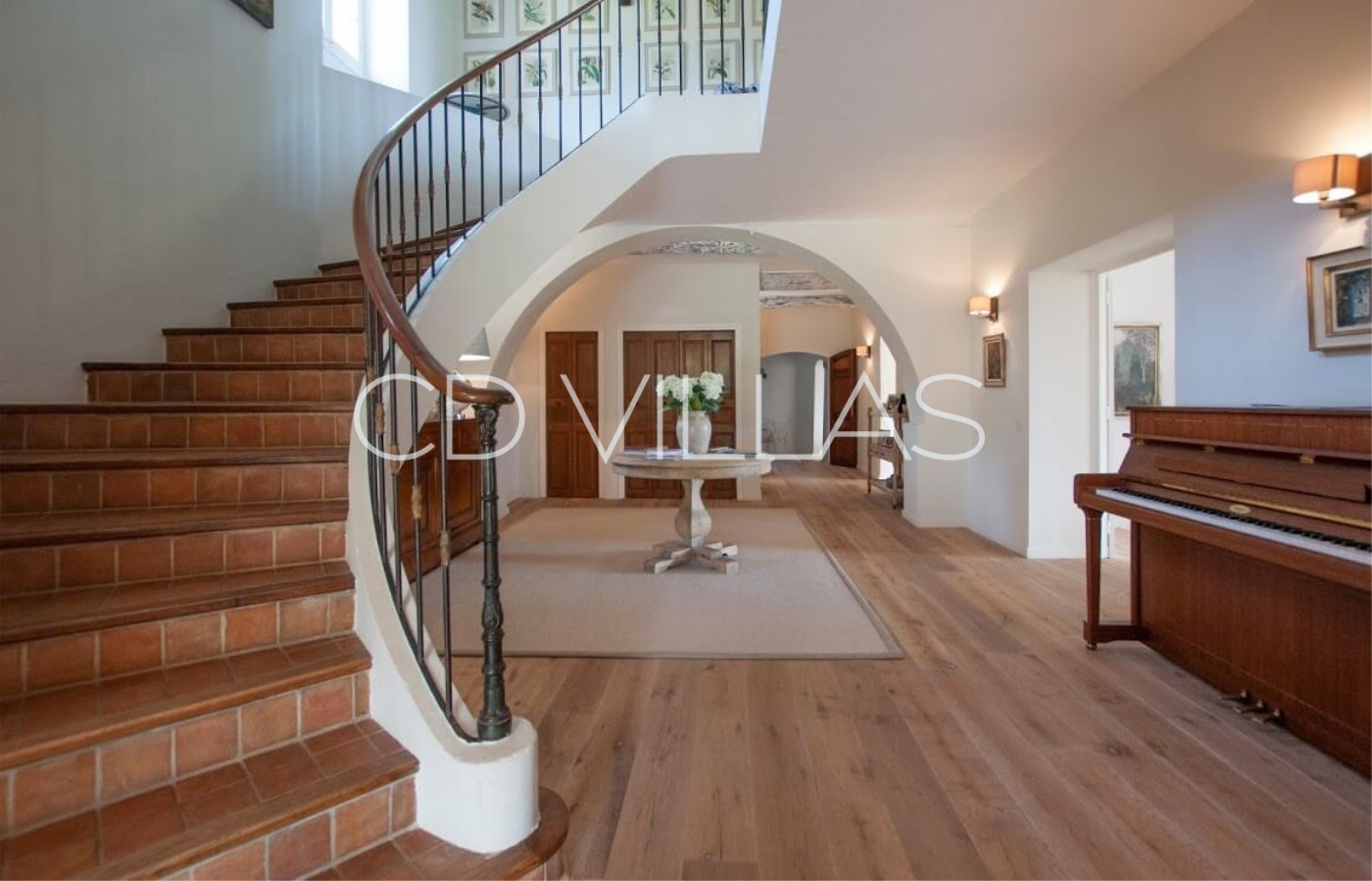 Dieses wunderschön restaurierte traditionelle Bauernhaus bietet 8 Schlafzimmer, hochwertige Innenausstattung, einen beheizten Swimmingpool und weitläufige Gärten mit herrlichem Meerblick.