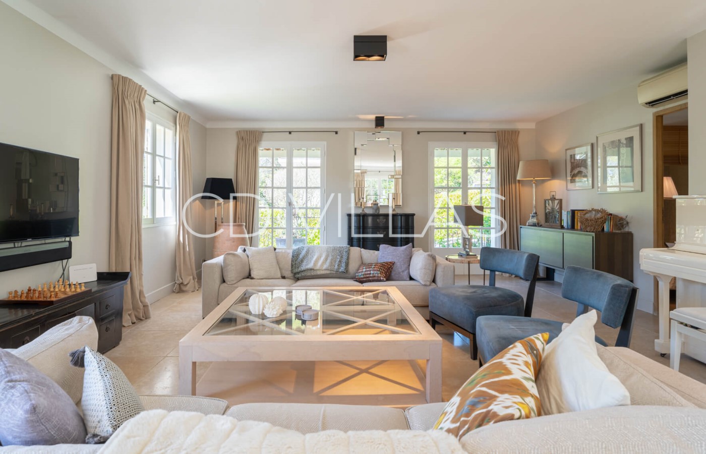 Die Villa erstreckt sich über 2 Etagen, wobei sich die Hauptwohnbereiche im Erdgeschoss befinden, zusammen mit 1 Schlafzimmer mit eigenem Bad und gut ausgestatte Küche, drei weitere 3 Schlafzimmer befinden sich auf der Gartenebene.