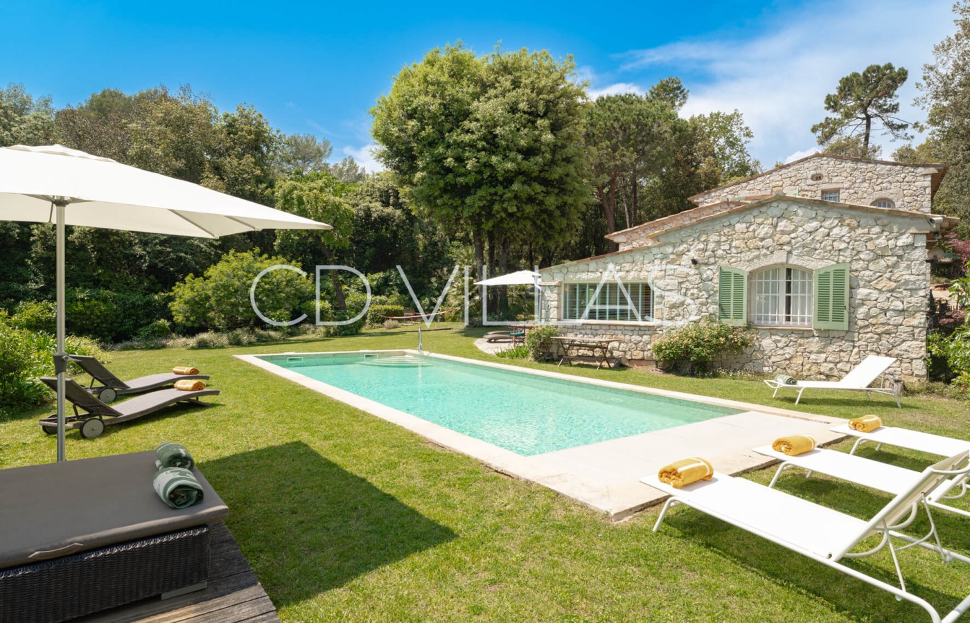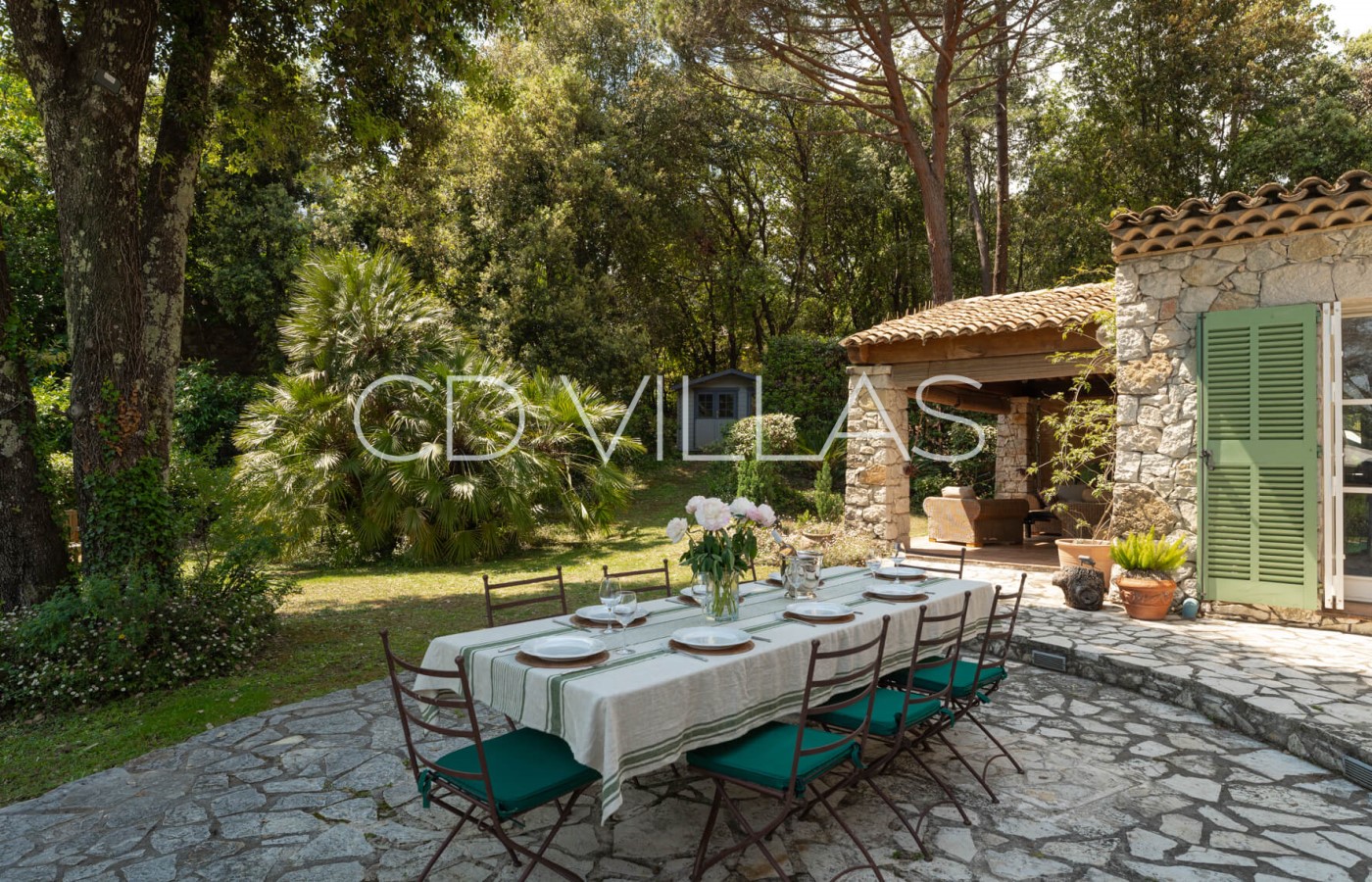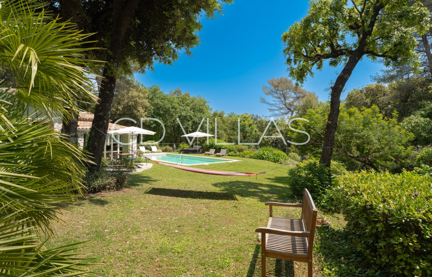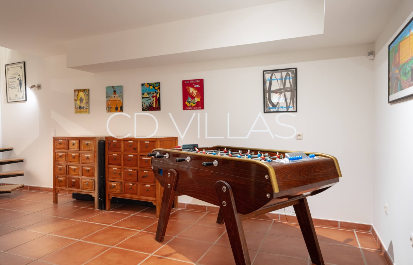 Schlafzimmer 1 - Hauptschlafzimmer mit großem Doppelbett, Bürobereich und Privatem Badezimmer. Öffnet sich zum Garten- und Poolbereich.