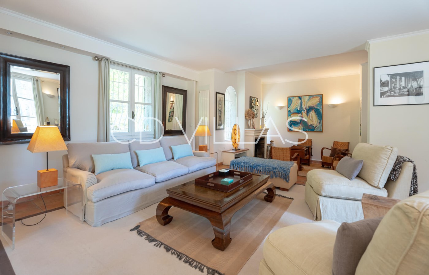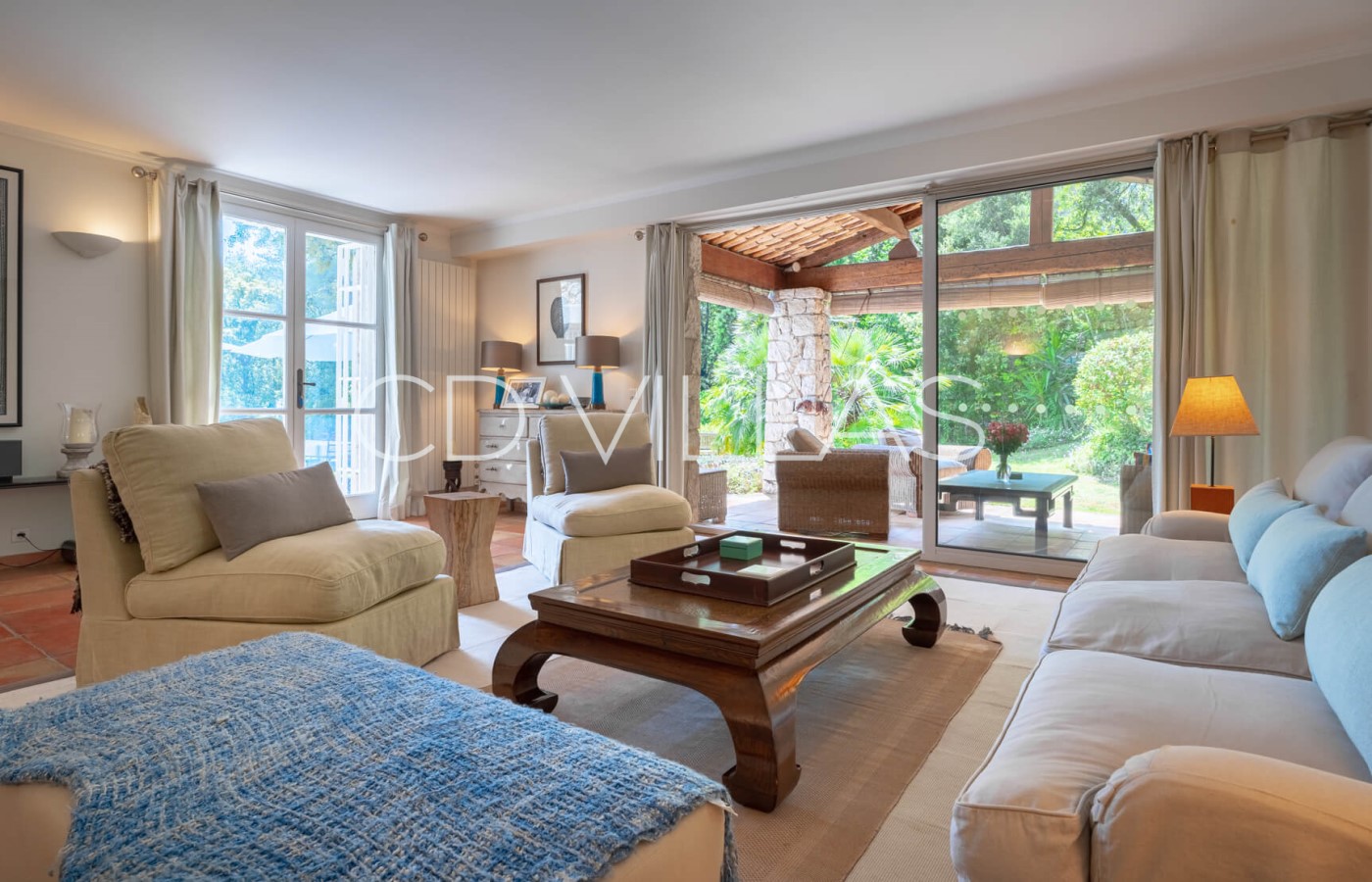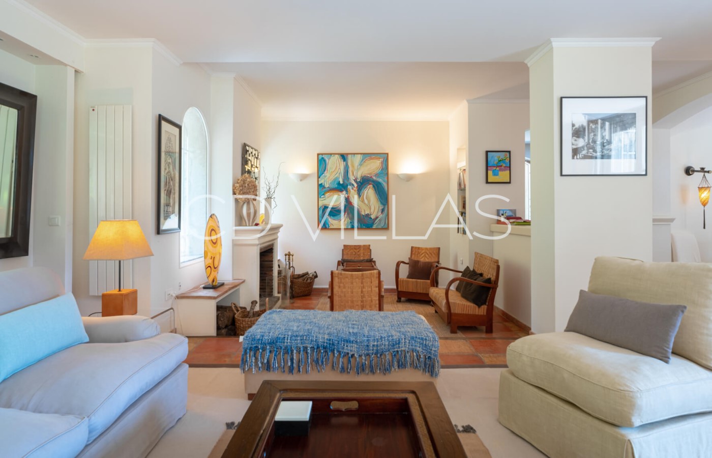 Wohnzimmer - Geräumiges Wohnzimmer mit bequemen Sofas, Zugang zum Garten und zur überdachten Terrasse.