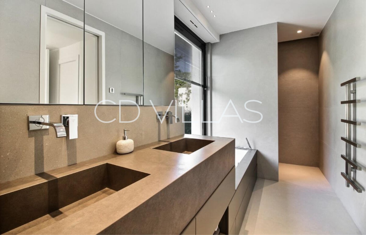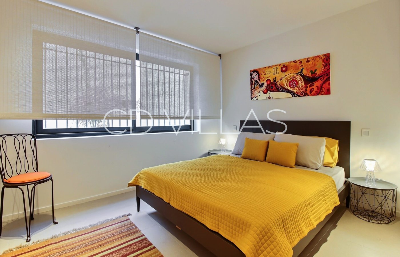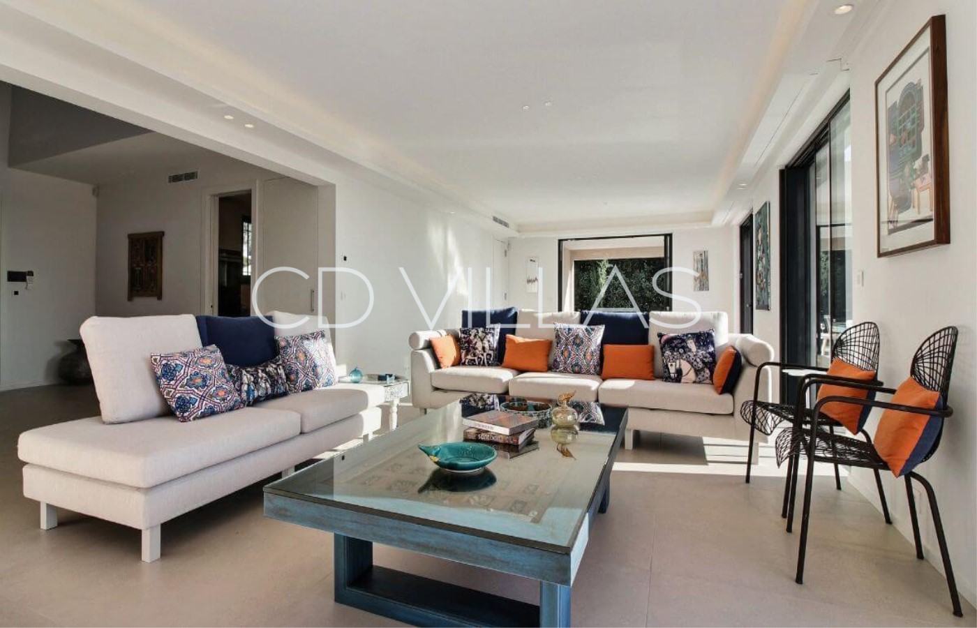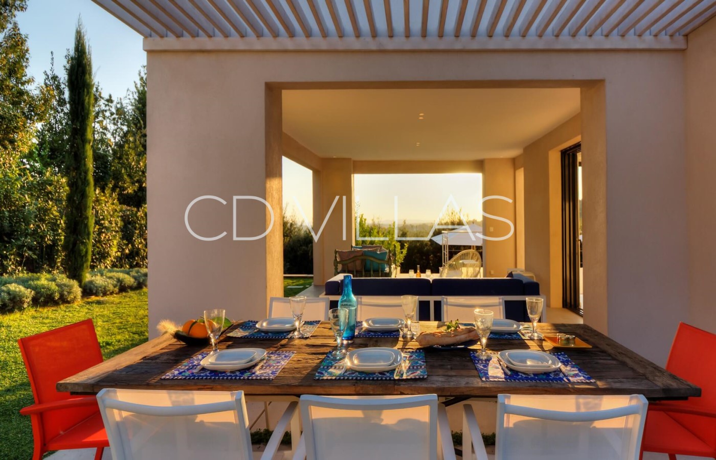 Die Villa wurde in einem modernen Stil eingerichtet und bietet eine gut ausgestattete moderne Küche mit Induktions- / Gasherd und amerikanischem Kühlschrank, ein großes Wohn- und Esszimmer, das sich zu einer schönen Terrasse hinaus öffnet, von der aus die Gäste den schönen Blick auf die Hügel und das Mittelmeer genießen können .