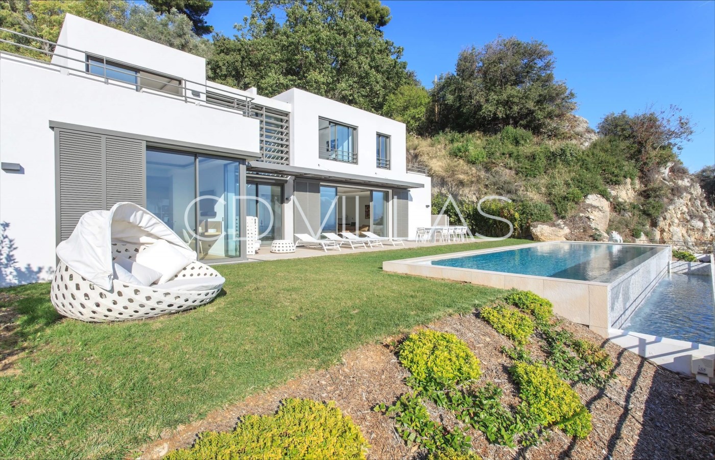 Wunderschöne Villa mit 4 Schlafzimmern in den Höhen von Nizza in einer ruhigen und privaten Umgebung mit Infinity-Pool und herrlichem Blick über die Stadt und das Meer.