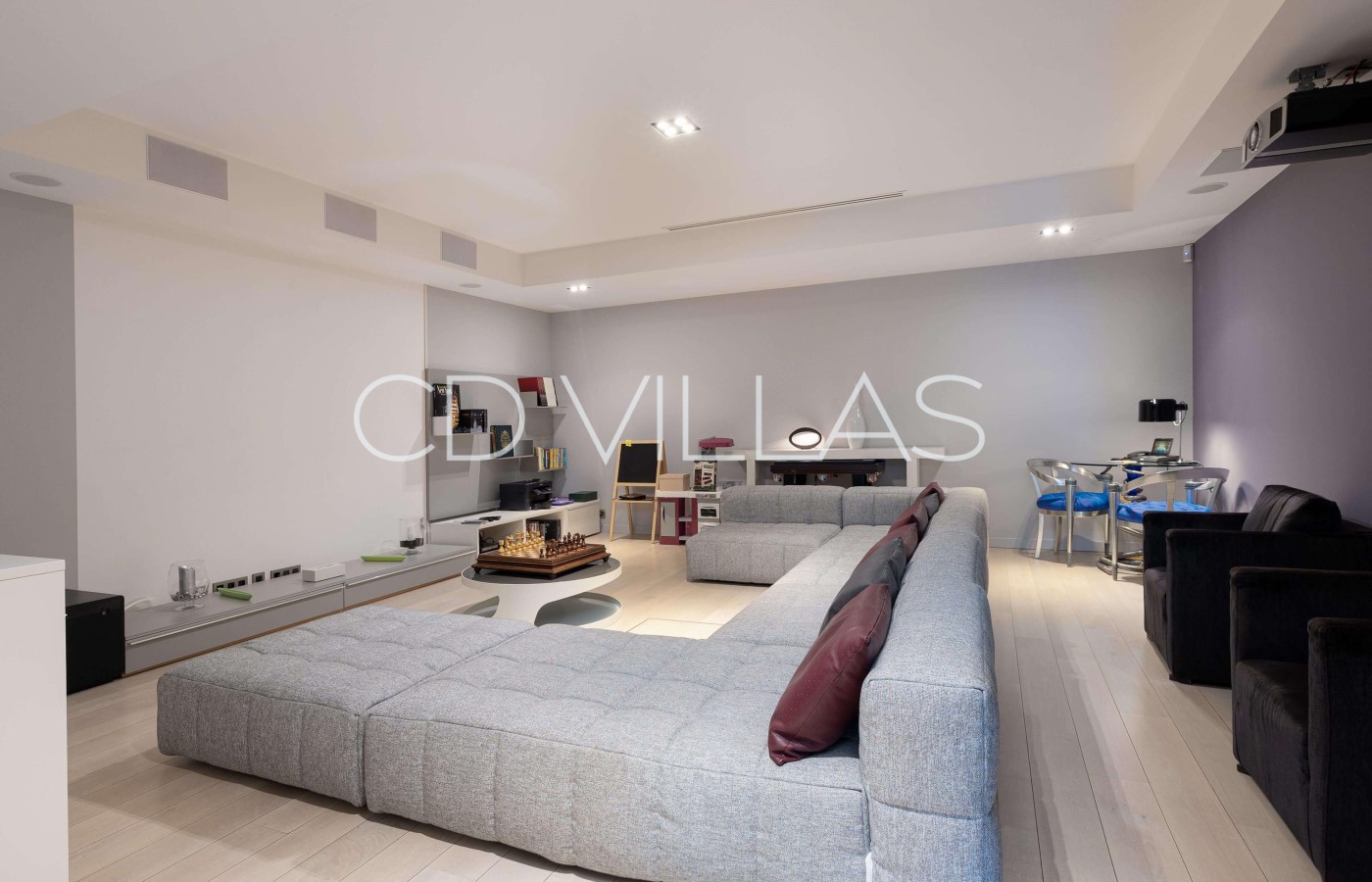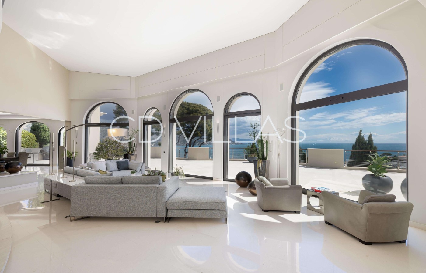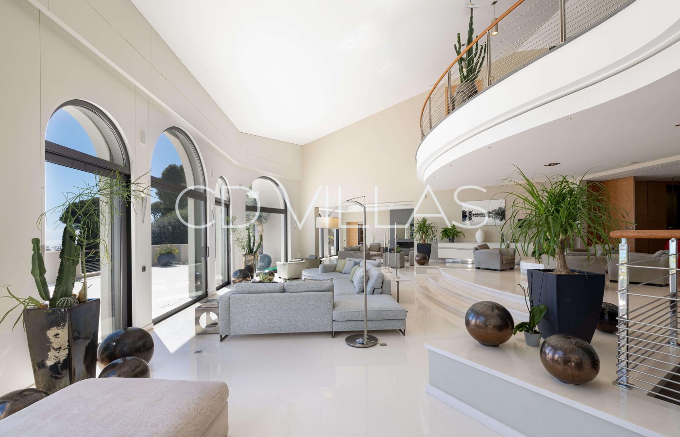 Sitzecke und Panoramablick auf das Meer. Heimkino mit Bar.