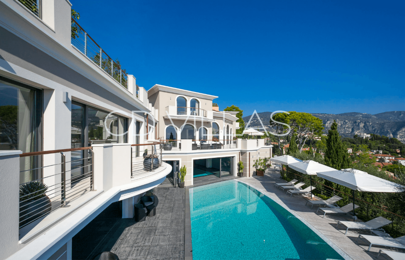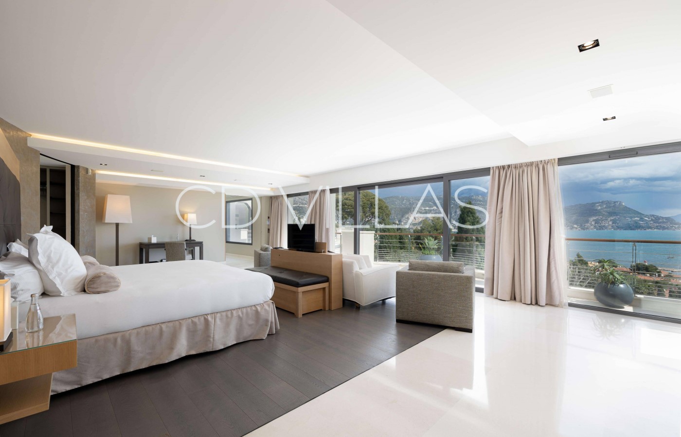 Luxuriöse Villa mit modernster technischer Ausstattung auf der Halbinsel Saint Jean Cap Ferrat, auf halbem Weg zwischen Monaco und Nizza. Fabelhaftes Anwesen mit ca. 1.200 m² Wohnfläche auf einem ca. 8.000 m² großen Grundstück mit Panoramablick auf das Meer. Verfügbar für Vermietung und Seminare.