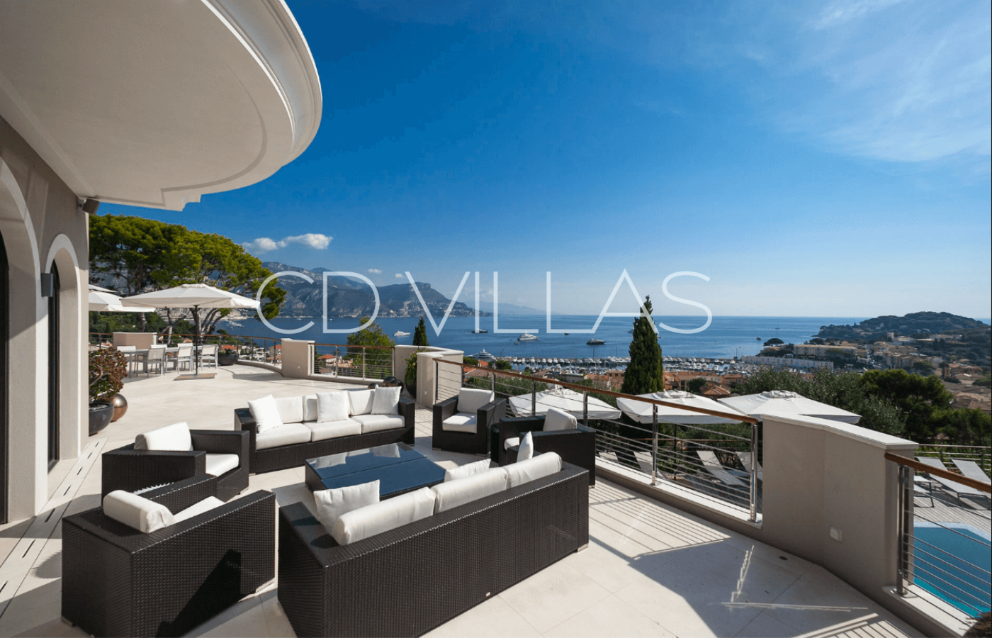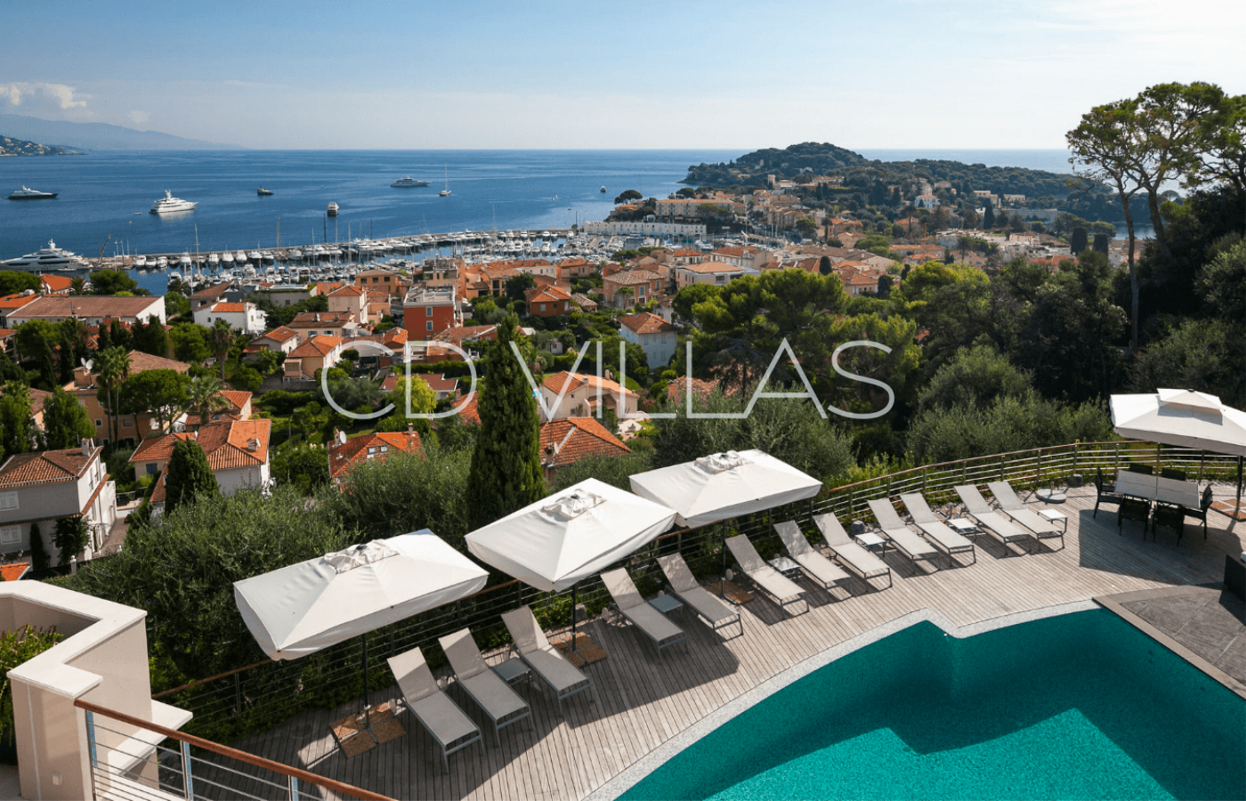auf den Hafen von St. Jean Cap Ferrat und den Außenpool. TV-Bereich