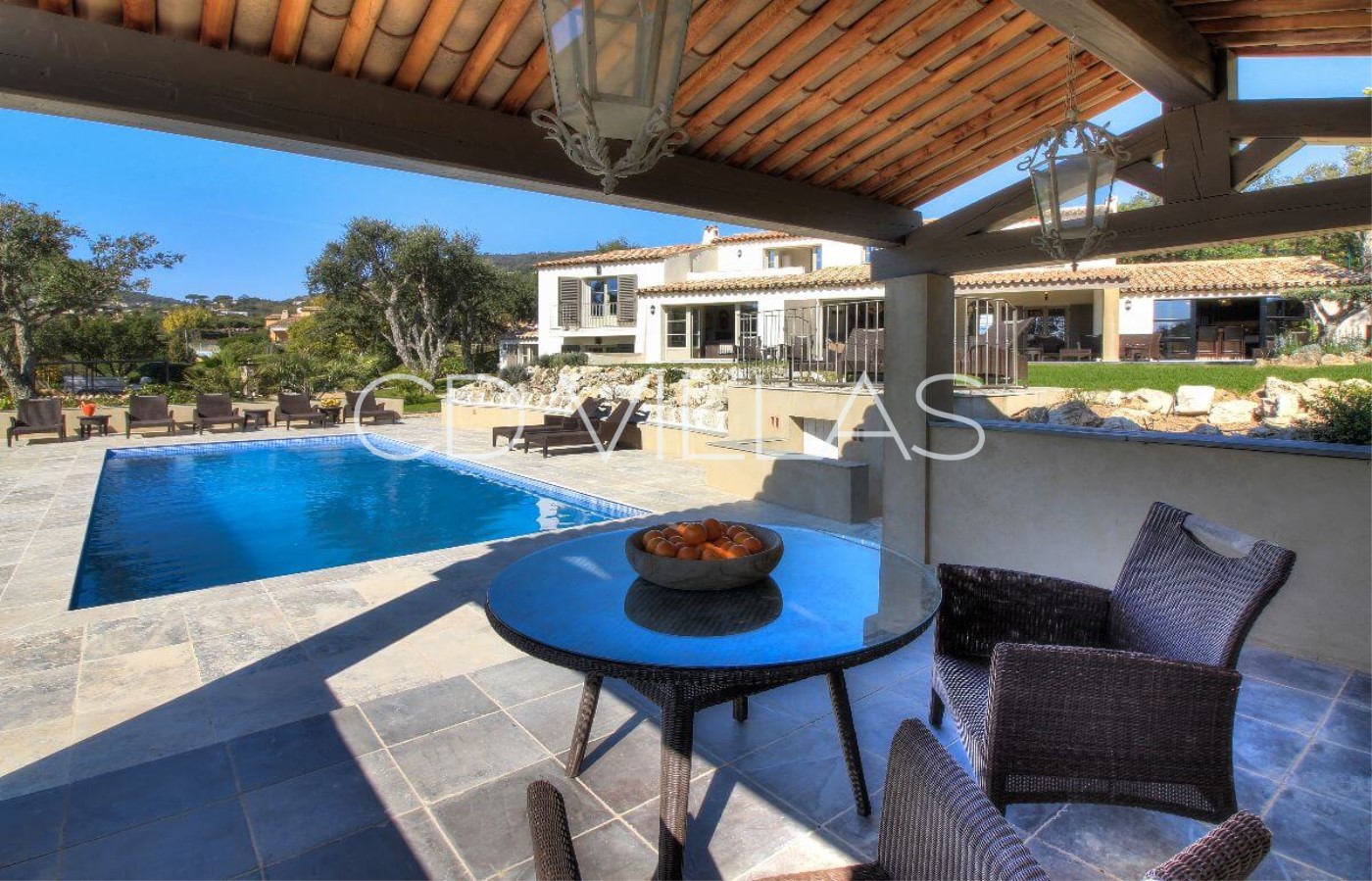Die Villa befindet sich in der ruhigen idyllischen Wohngegend Beauvallon in Laufnähe zum Strand und nur einige Autominuten zum lebhaften Küstenort Sainte Maxime. Eine kurze Fahrt nach St Tropez, viele bevorzugen die Fähre, die regelmäßig zwischen Sainte Maxime und St Tropez pendelt.