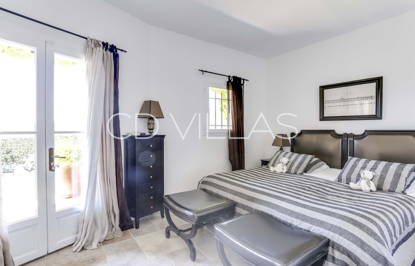 Schlafzimmer 2 - Mit großem Doppelbett, eigenem Bad und WC. Direkter Zugang zu einer Terrasse und Pool.