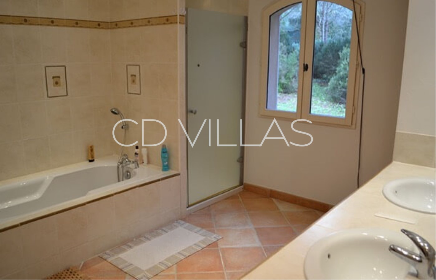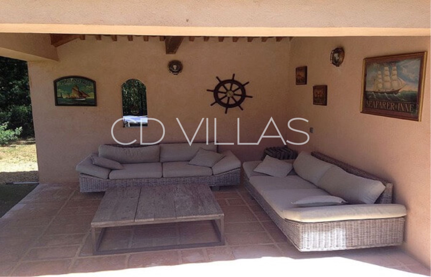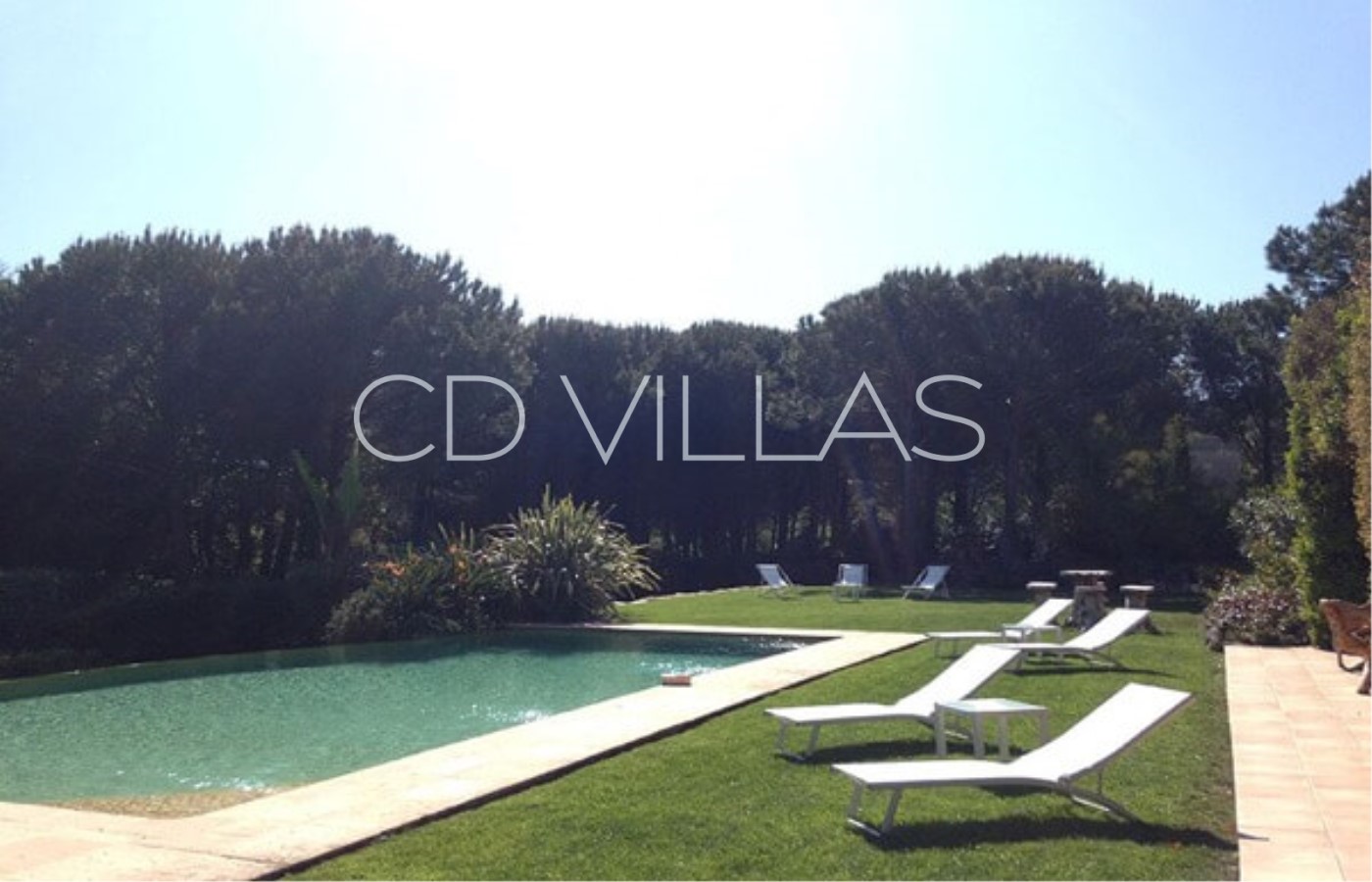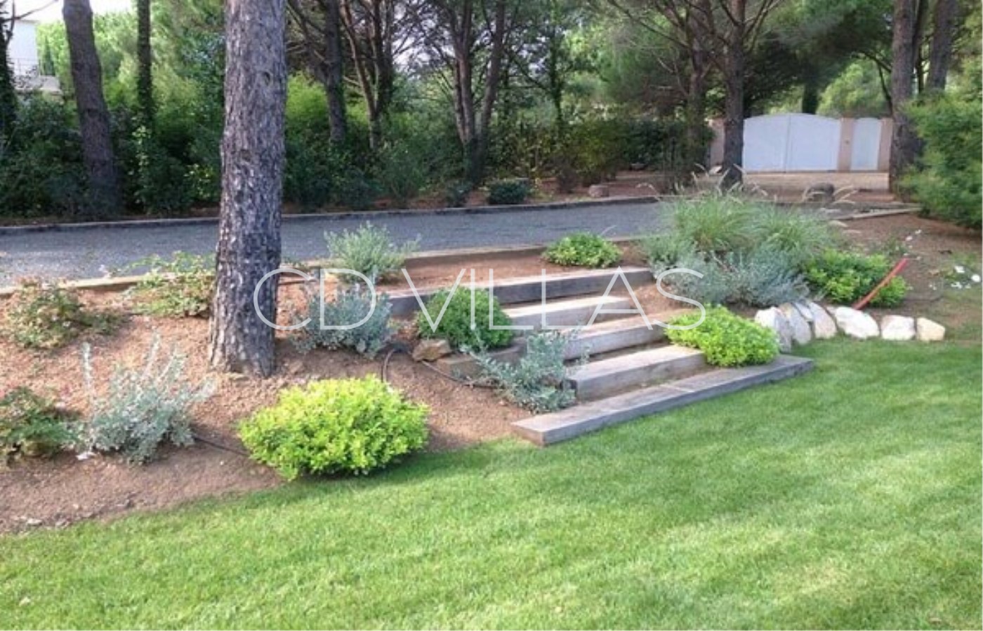 Die Villa liegt inmitten eines schönen mediteraneen Garten (5000m2) mit gepflegtem Rasen, Palmen und Nadelbäumen. Der geschützte 12x6m Pool befindet sich im Zentrum mit Treppenzugang, großer Poolterrasse und schattigem Poolhaus. Den Gästen stehen Tischtennisplatte und Fahrräder zur Nutzung zur Verfügung.